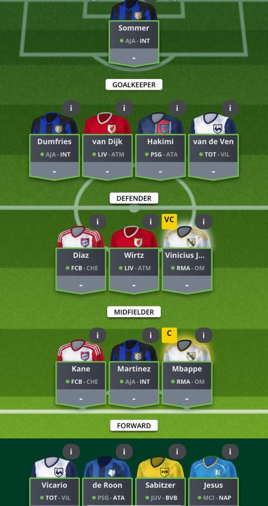 For those new to the game, the captain scores x1.25pts, as does the UD (Underdog), the cheapest player in your squad.