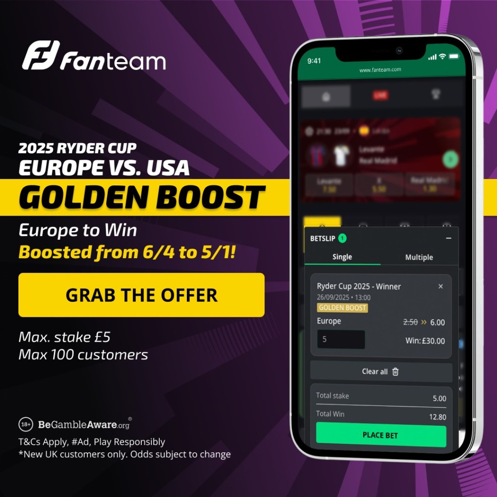 Europe to win the Ryder Cup at 5/1 (Golden Boost offer)